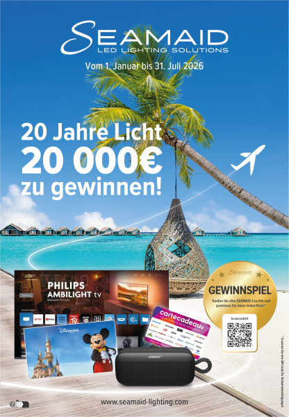 Ein Jahrestag ohne Geschenke ist kein echter Jahrestag… Um diese 20 Jahre Abenteuer mit Ihnen zu feiern, bereiten wir ein großes SEAMAID-Preisausschreiben vor, vom 1. Januar bis 31. Juli 2026, mit außergewöhnlichen Preisen im Gesamtwert von 20.000 €!